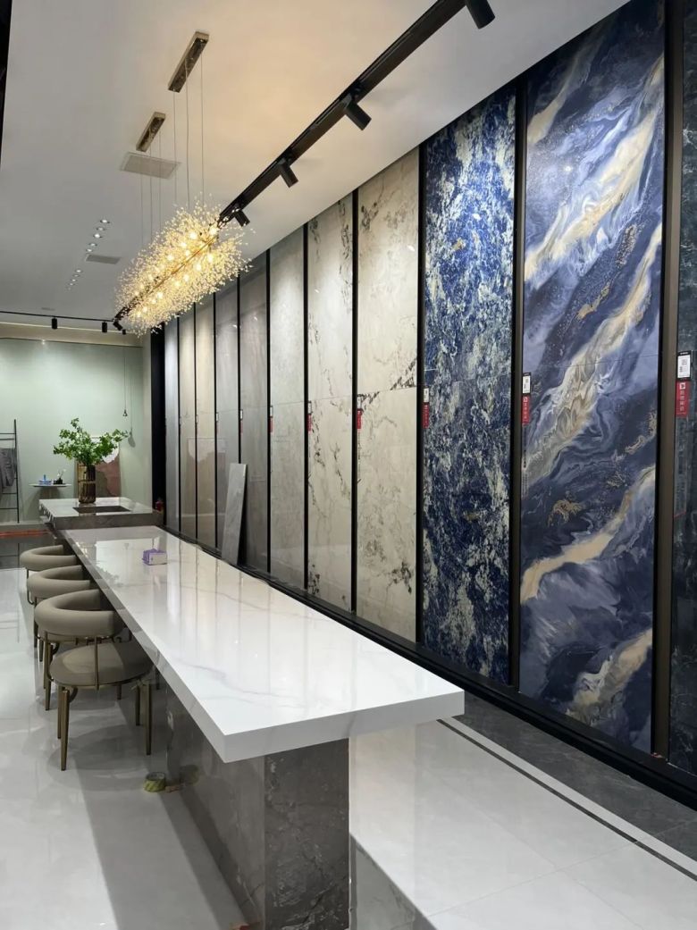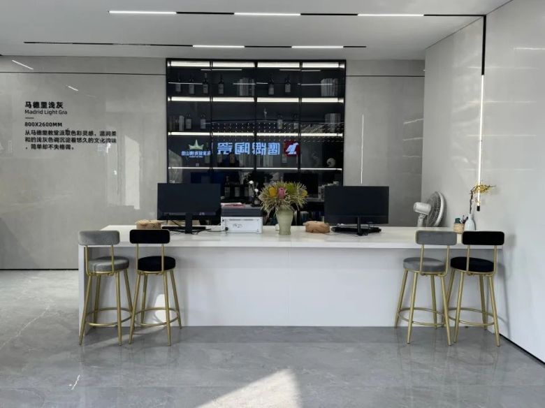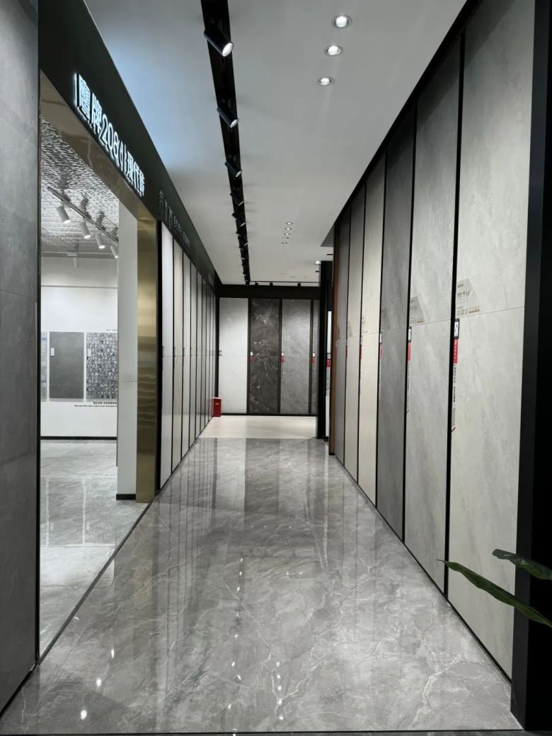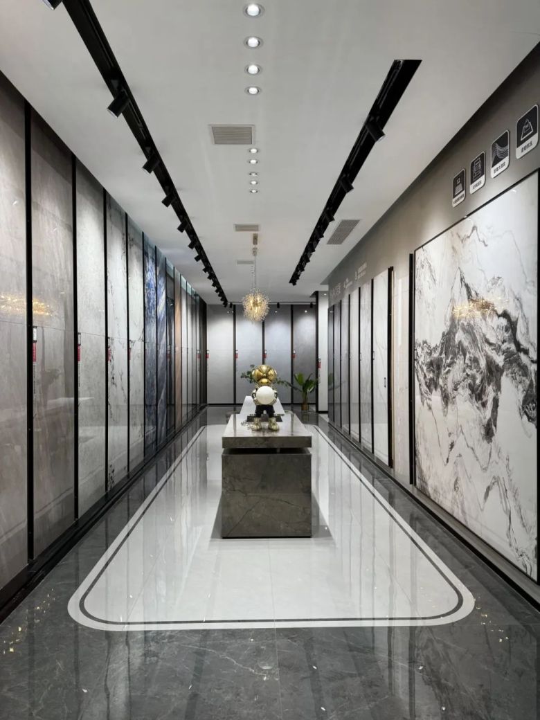 极简的选材区设计,低调而不失高雅。涵盖了鲸MAX、素奢微水泥、中国瓷等具有高端工艺、多种风格的全品类产品,通过巧妙的灯光变化及整齐有序的陈列,使得每一款产品的特点与细节得以完美呈现,让消费者的视觉观感得到升华,拥有沉浸式选购体验,畅想美好人居生活。