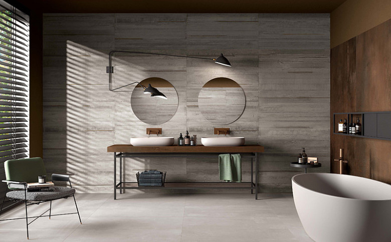 值得一说的是,无论是君主系列也好,还是此前引进的 WIDE岩板体系也好,两者凭借优越的物理性能,不仅都能够大面积上墙下地,还能通过各种加工切割,使其应用于家具、台面、洗手盆、楼梯等。