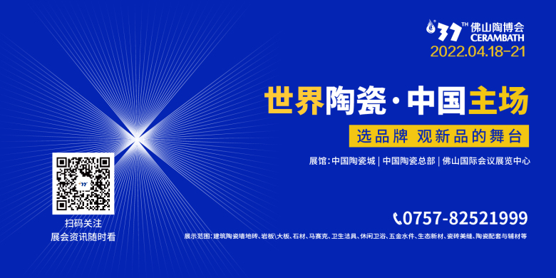 2022年4月18-21日,第37届佛山陶博会将以“世界陶瓷·中国主场 | 选品牌 观新品的舞台”为主题,在中国陶瓷城展馆、中国陶瓷总部展馆、佛山国际会议展览中心展馆同步举办。