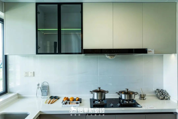 厨房的用砖风格相比之下更显整洁,这里摒弃了繁杂的纹理,选用白色+一石多面的经典组合,让烹饪区域的构建更为素雅洁净。