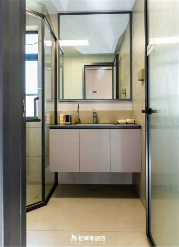 卫生间墙面铺贴格莱斯阳光浅米色,暖阳的色调温馨舒适,墙地同色系的深浅过渡,提升空间层次感,哑光砖面温柔雅致,呈现出几分淡淡的恬静,在室内营造出了软糯的视觉效果,置身其中,洗漱褪去的一身疲劳,感觉神清气爽!
