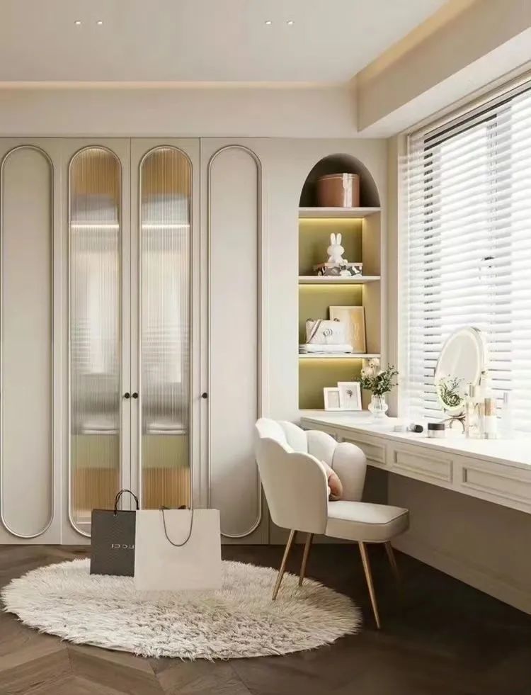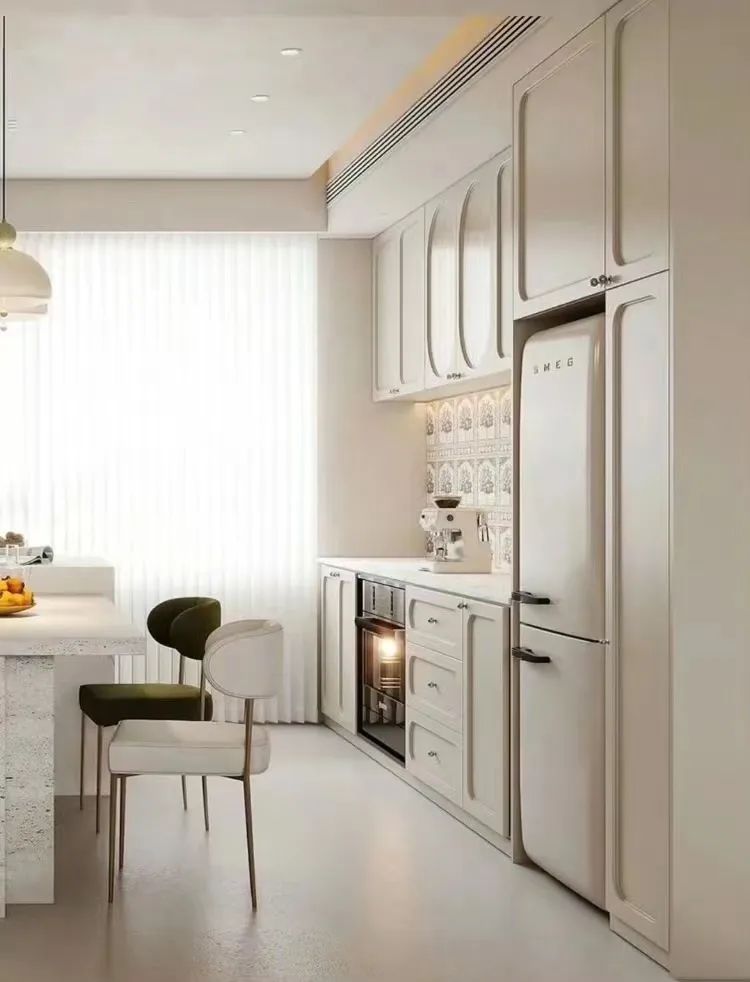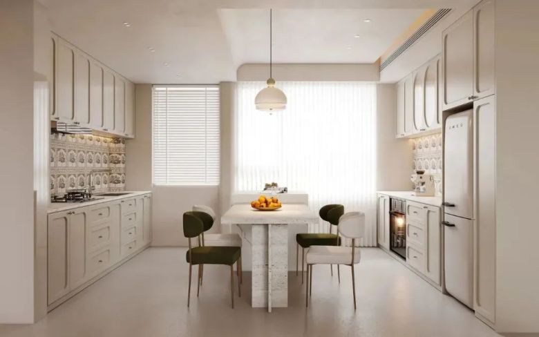 整个空间以奶白色奠定温馨的基调,去除繁杂的装饰与鲜明的色彩,轻盈的奶白色与牛油果绿交织,呈现软糯的温柔质感,透出优雅、舒适、自在的空间魅力。