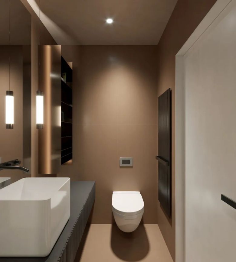 卫浴空间以淡淡暖调注入情绪与层次,方正暖棕格子是空间内活力的来源,搭配明亮又高级的奶黄墙面,营造了温暖的北欧情调。