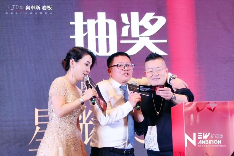 特别的,颁奖典礼上压轴举办了一场激情澎湃的抽奖仪式。针对2024年奥卓斯岩板特别策划的国际游学活动——【奥卓斯2024经销商意大利岩学之旅】,现场以嘉宾抽奖的形式抽出了20位获得2024意大利岩学之旅名额的幸运经销商伙伴。晚会气氛不断到达高潮,所有人都沉浸在这场欢乐盛宴中。