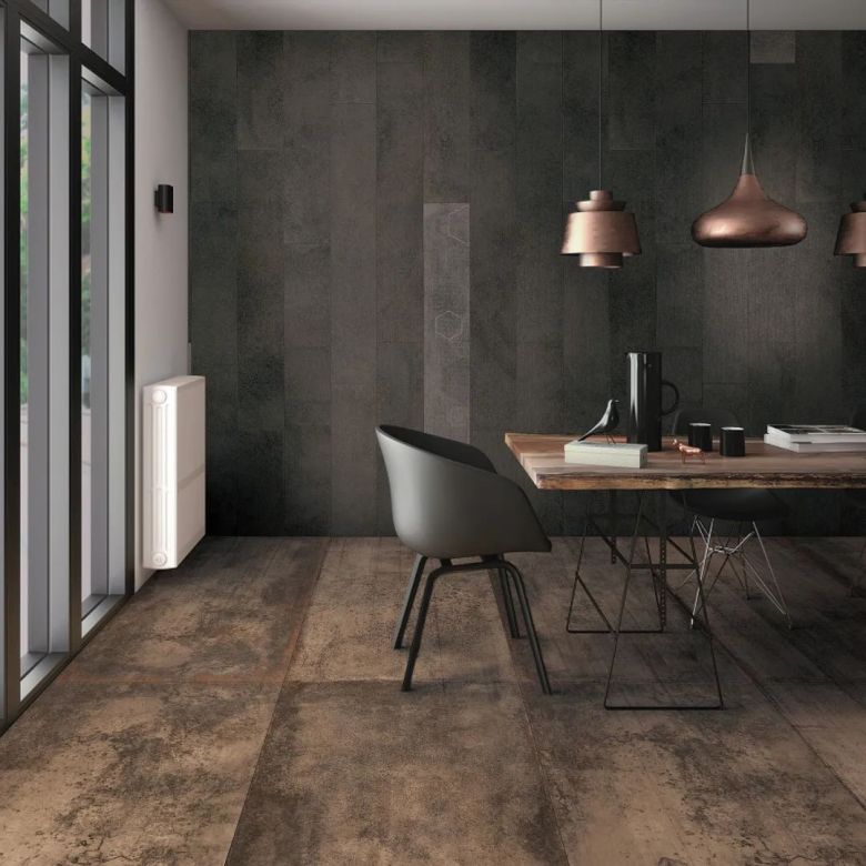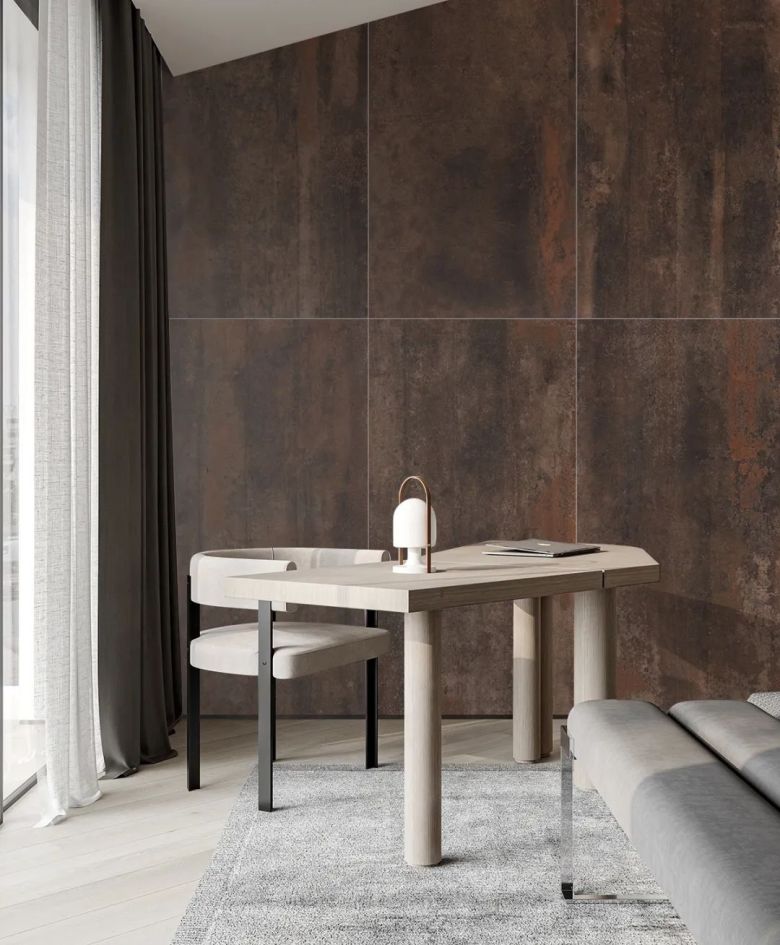 金属质感是当今瓷砖行业流行的风向标,它外表酷味十足,金属质感明显,着色稳定,亮丽,给人们以视觉上的美艳冲击,装饰效果依据选择的花色,呈现出华丽、野性、质朴等不同的美感。