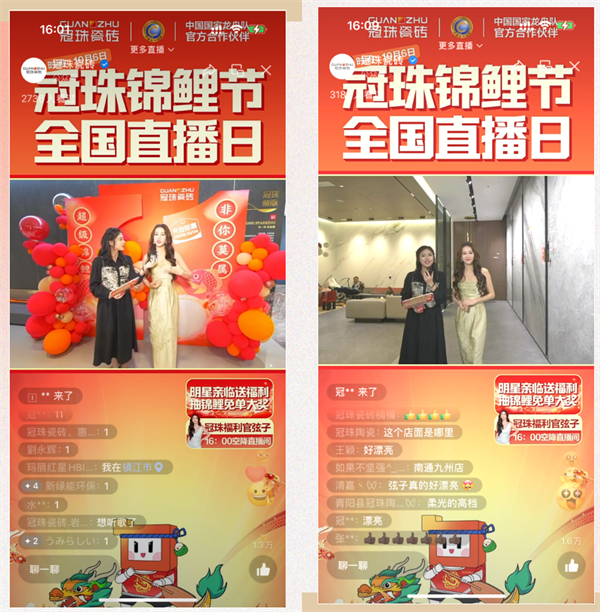 锦鲤节作为冠珠的一大IP,以“超级锦鲤、超级福利”为概念,精选品质国货,切实造福消费者。冠珠瓷砖锦鲤节第五季,迎来了冠珠锦鲤节全国直播日暨南通冠珠开业庆典的惊艳绽放,让我们看到品牌始终在迭代的是产品、服务与优惠,不曾改变的是为消费者提供更前沿、优质的家居解决方案的初心。