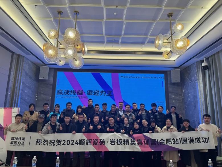 本次集训营的成功举办不仅提升了安徽服务商的专业能力和市场意识,也为顺辉瓷砖·岩板在安徽市场的深入发展注入了新的活力。顺辉瓷砖·岩板期待与服务商们共同携手,赢战终端;2024,顺辉向上!