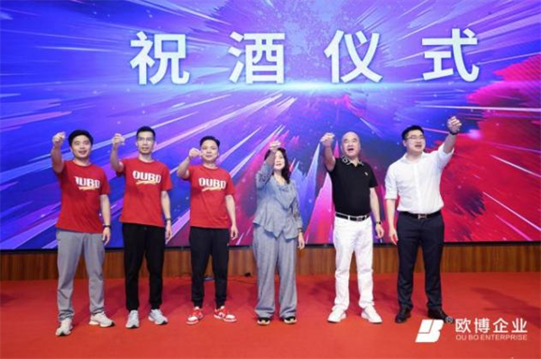 随后,欧博企业核心领导团队共同来到舞台上,与全场嘉宾举杯同庆,共祝“欧博盛启,万象朝新”,酒杯相碰之声与真挚祝福交织,将感恩之情融入每一个瞬间。