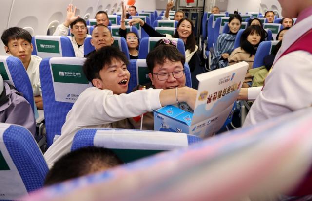 当日,超过100位旅客参与到南航C919蒙娜丽莎主题航班四川成都航线首航日“云端”主题活动当中。