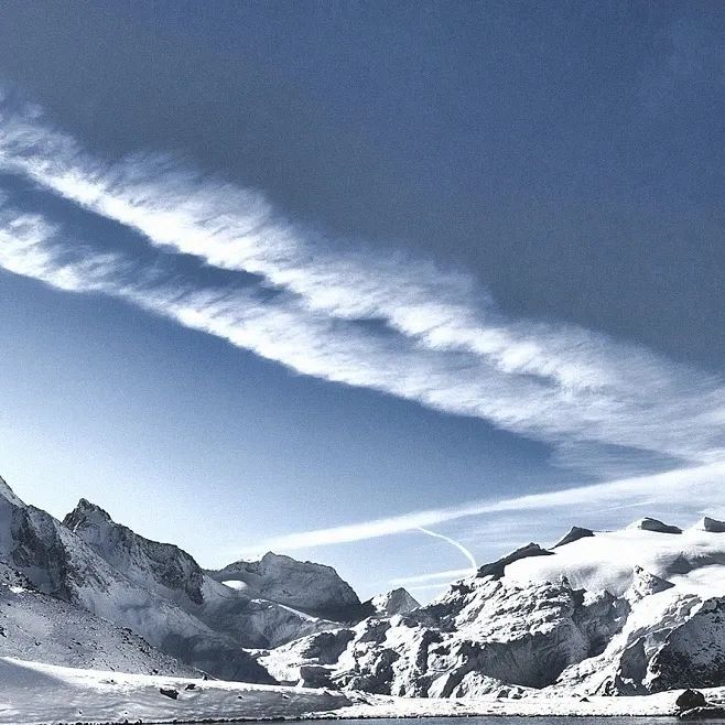 深浅不一的冰川裂纹蜿蜒而上,无暇无界,宛如能够洗涤心灵的尘埃,给人空灵宁静的感受时,带来无尽浩瀚的视觉效果。