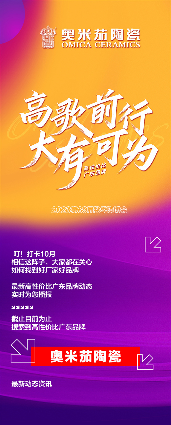 第39届秋季佛山陶博会,与我们一起见新力量,燃爆主场。奥米茄陶瓷一路高歌前行,带您一起走进高性价比广东品牌,看看他们的财富亮点都有哪些优势。