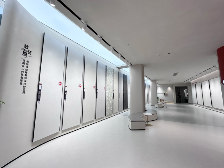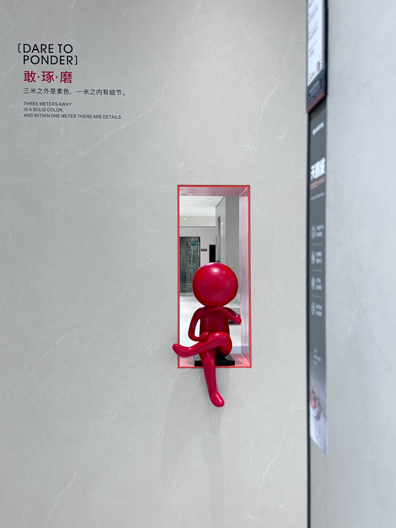 重装升级的新展厅,在设计上有着更为大胆的突破,从布局、空间、产品、文化等方面多维创新,大场景多角度展示金科天鹅绒、法兰绒、素色质感砖、大板等一系列高颜值全新产品,多方位展示产品功能实验,全面提升品牌文化理念。