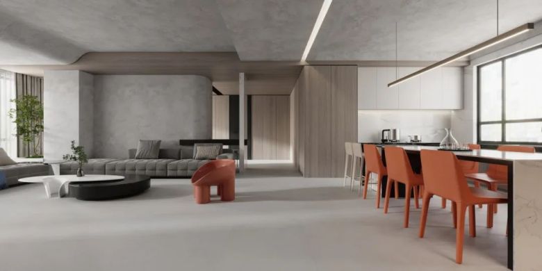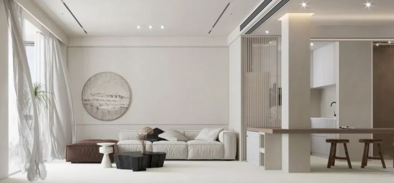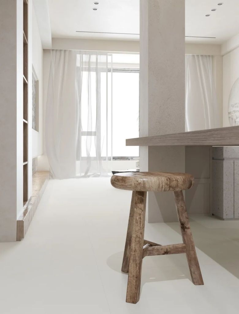 大面积使用素色的客餐厅动区会让人感觉色调偏清冷一些,使用一些原木原色搭配中和就刚刚好,目光所及之处皆是舒适和谐。