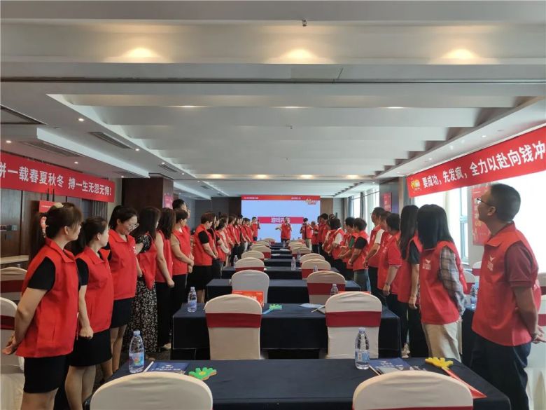 启动会上,总部领导的战前动员讲话、总部落地的大力度支持政策、以及联动活动丰厚的奖励措施,让全体联动人员士气大增,斗志昂扬。现场气氛热烈,掌声喝彩不断,热情高涨。在团队打造环节,三大战区蓄势待发,各大战区在台上展现出积极火热的团队风采,表现出敢于挑战,勇于拼搏的团队姿态,势必在即将开始的联动PK比赛中勇夺第一。