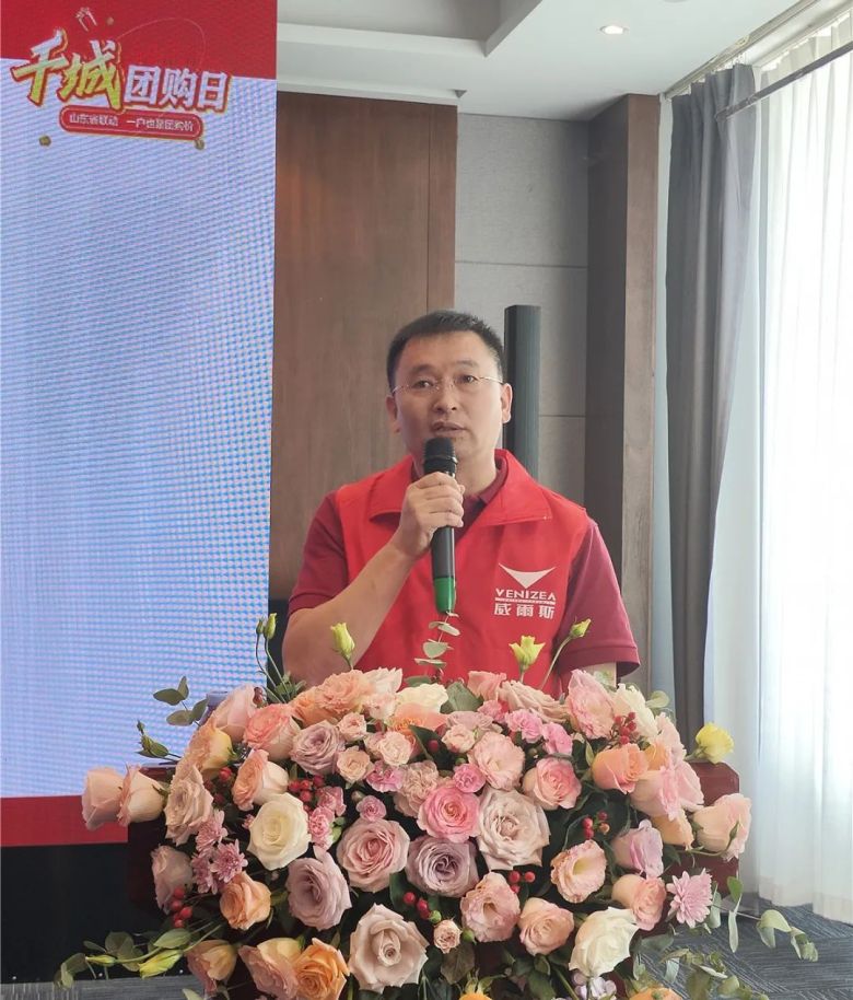 山东省联动启动会上,威尔斯陶瓷品牌总经理李基华、销售副总经理李健及茌平威尔斯经销商郑春玉就本次山东省联动活动进行战前动员及致辞。李总表示:“总部对“千城团购日”山东省联动高度重视及寄予厚望且充满信心,总部作为大家坚实后盾,将会整合一切优秀资源,全力支持山东省联动的一切工作落实,希望山东全省经销商持续加强与总部的双向联动,把握市场脉搏,全力以赴抢占市场份额,为提升威尔斯品牌效益,打好本次山东联动活动攻坚战做好充足准备!”