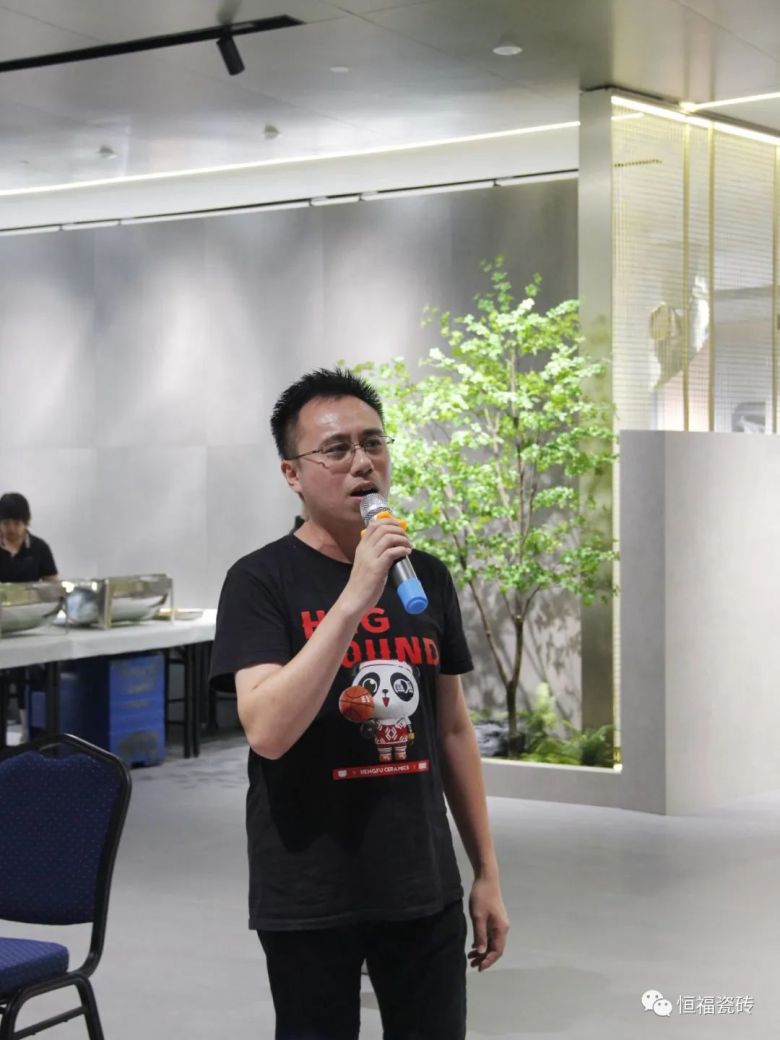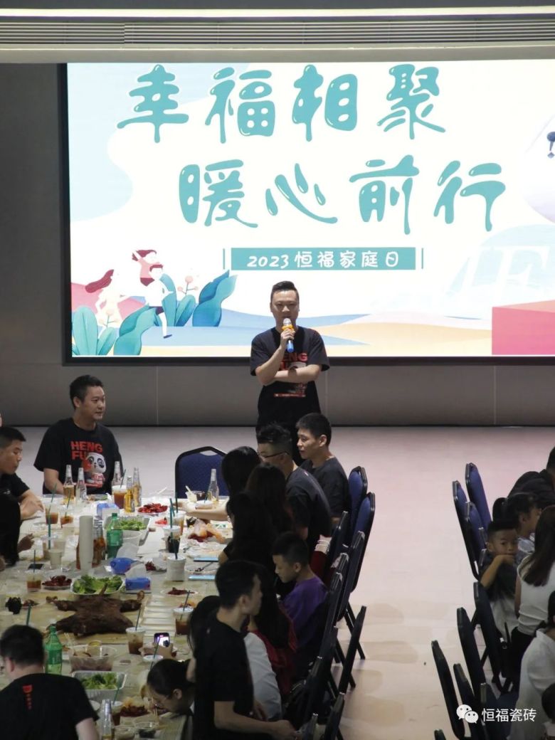 恒福瓷砖营销总经理范瑜在欢迎词中表示,公司最近取得的成绩来之不易,这些成绩的取得既凝聚了公司全员的辛勤与汗水,也饱含着员工家属的无私奉献和鼎力支持,并代表公司向所有员工及员工家属表示最崇高的敬意和最衷心的感谢。他表示,公司将不负大家的重托和希望,为员工发展创造机会、提供舞台,希望大家一起风雨同舟,和衷共济,携手共进,再创辉煌!