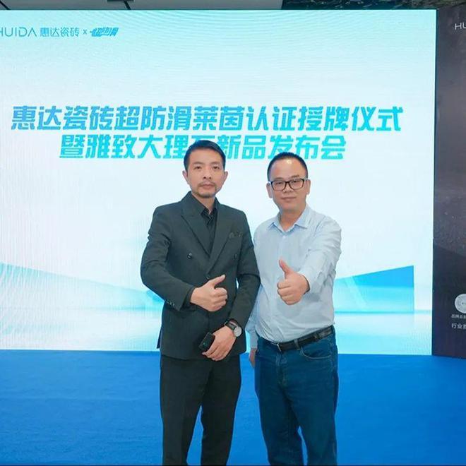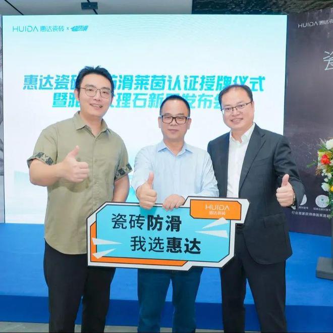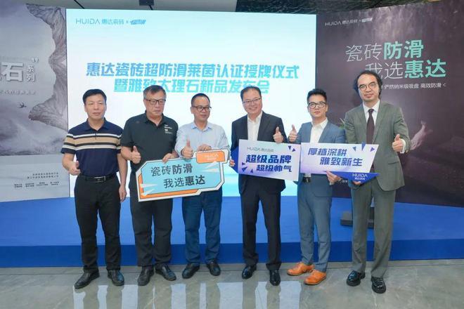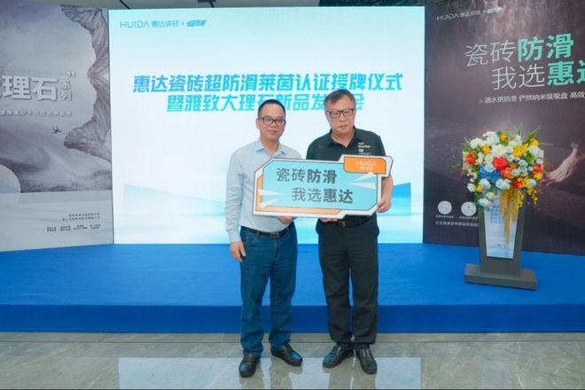 惠达更新四十余载,根深叶茂树百年。2023惠达瓷砖坚定不移的推动品牌高端化进程,“瓷砖防滑 我选惠达”的超防滑IP获得行业广泛关注。值此39届秋季佛山陶博会之际,惠达瓷砖国内首张“德国莱茵认证”超防滑证书颁发仪式暨第三代超防滑新品“雅致大理石”发布会于惠达全球运营中心圆满举行。