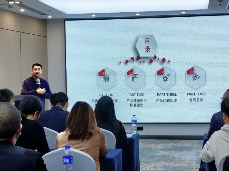 会议最后,鹰牌总部培训师还针对售后服务向全体销售人员进行了讲解。专业的售后服务是提高用户对品牌信任度及满意度的重要因素。主讲师通过多方位的讲解,进一步提高了销售人员的专业水平及售后服务质量。