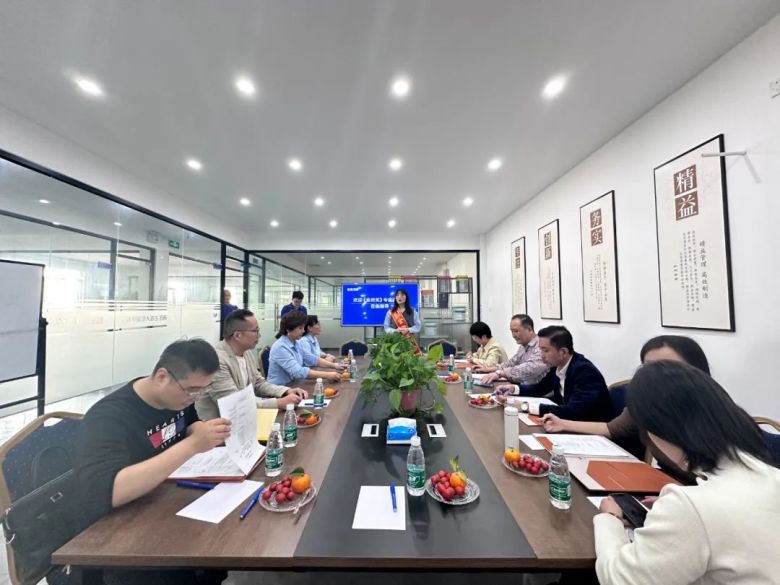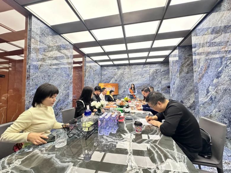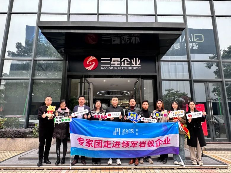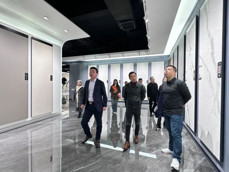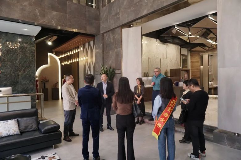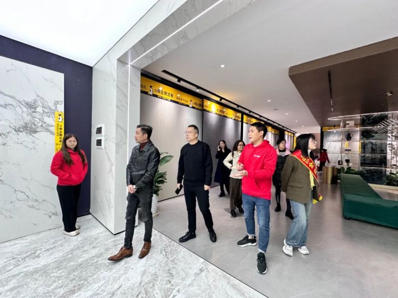 考察调研过程中,专家团一行认真听取贴得稳产品等各方面情况介绍,仔细了解岩板交付的主要环节。