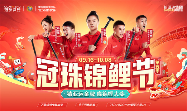 硬气拼出中国美、为健康美好生活添砖加分,冠珠瓷砖锦鲤节第五季也将高燃开启,猜中国国家龙舟队金牌数量赢万元免单锦鲤大奖,还有更多福利敬请期待!