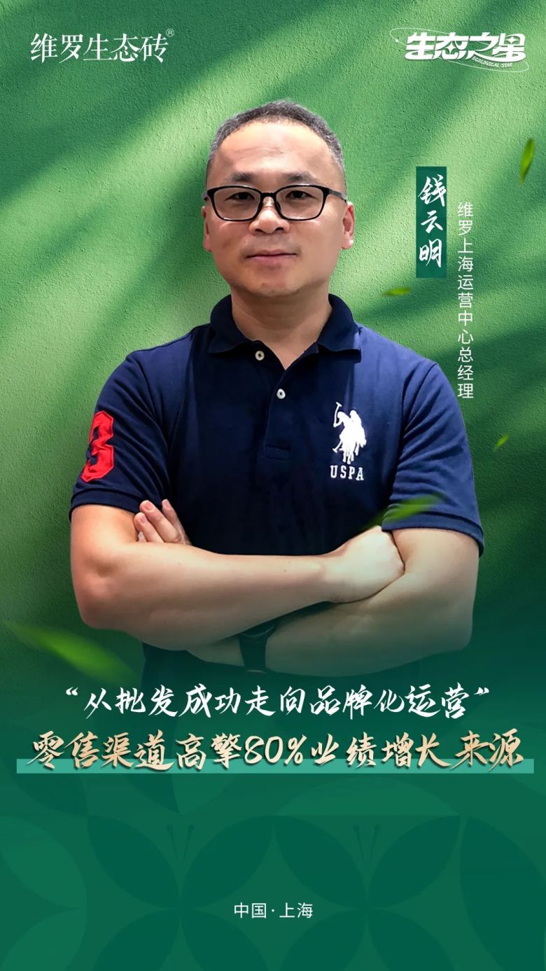 而钱云明在这个时候,放弃传统批发模式,以睿智的目光选择了维罗生态砖品牌,把危机化为机遇,成功转型品牌化运营,短短几年时间,扭转渠道模式,把零售份额占比做到业绩占比80%以上,结交了数百家装潢公司,跟他们都成为了维罗生态砖的忠诚铁粉。