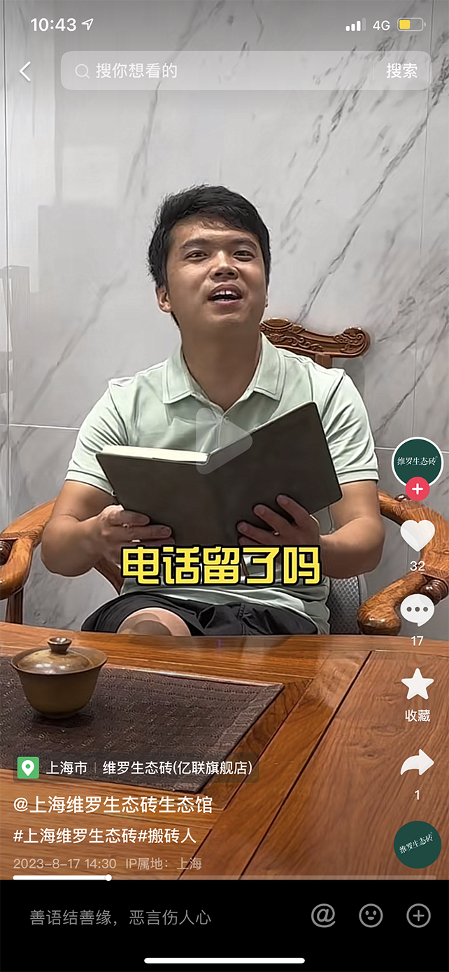 ▲上海维罗生态砖抖音营销获客作品