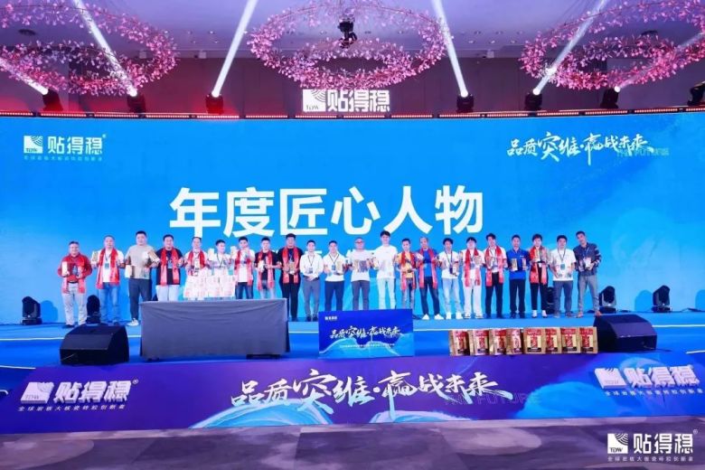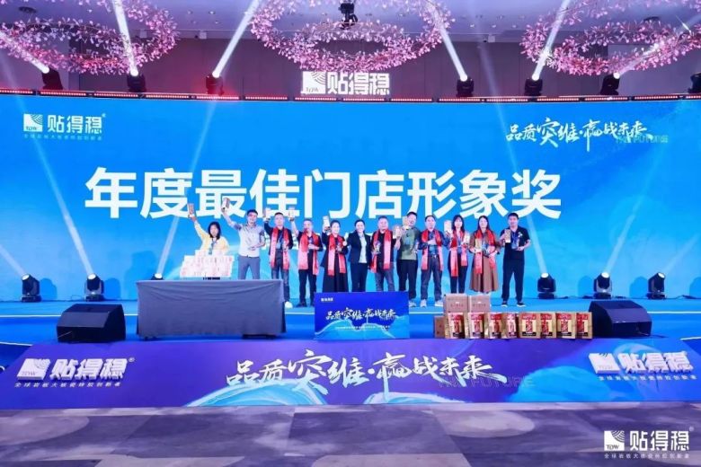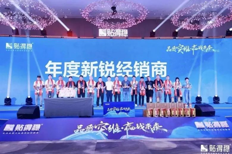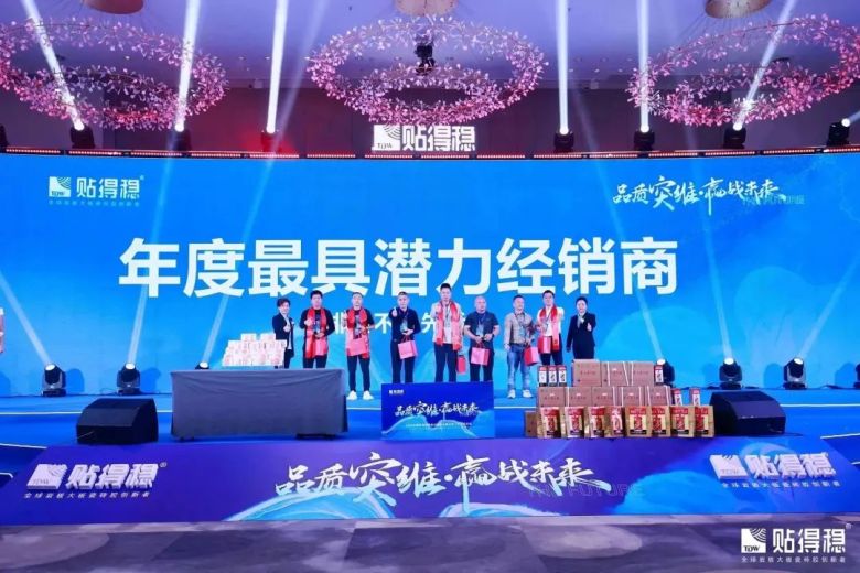 为表彰作出卓越贡献的经销商,贴得稳品牌特别设立了多个荣誉奖项,并为获奖经销商进行了隆重的表彰仪式,同时颁发奖励,以荣誉激励奋进,用模范领航前行。