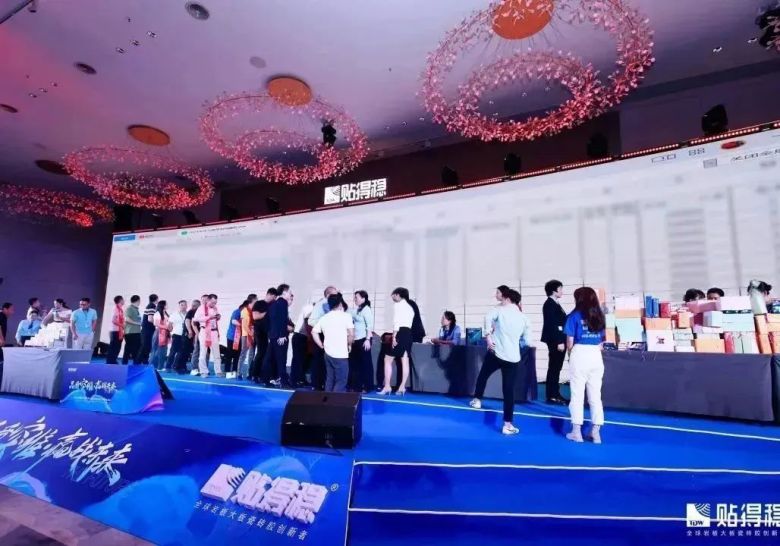 在行业权威大咖及媒体朋友的共同见证下,贴得稳品牌董事长胡媛女士携手二十一位重磅嘉宾,共同上台启动贴得稳品牌上市仪式,在所有来宾的见证下共同按下启动键,这不仅是贴得稳品牌的又一重要里程碑,也标志着公司发展揭开了全新篇章!