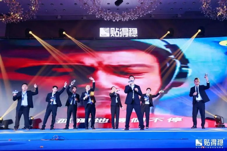 贴得稳精心打造环境氛围,以最隆重的仪式迎接全国各地经销商伙伴的到来,欢迎家人们回家。