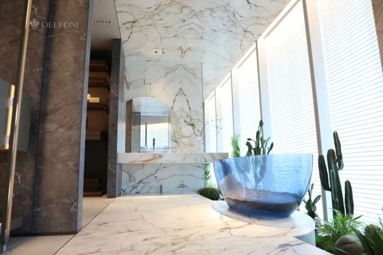 德利丰岩板体系完整,家装拥有11大系列、台面拥有9大系列、8种质感、5大规格、4种厚度,以及200多种花色的加持,且可广泛应用于背景墙、橱柜、衣柜、浴室柜、阳台柜、洗手台、楼梯等全屋定制空间。