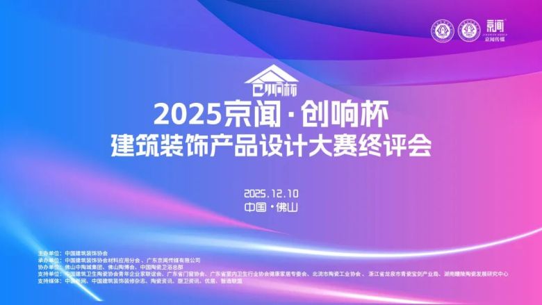 12月10日,2025 京闻・创响杯建筑装饰产品设计大赛终评会在广东佛山隆重举行。本次大赛以 “创响设计・赋能建筑装饰新生态” 为核心,秉持高规格、强专业的办赛理念,汇聚行业顶尖力量与优质应用设计作品,聚焦陶瓷、建筑、卫浴、五金、门窗、新材料等核心品类展开巅峰对决,为推动行业创新升级与质量提升树立鲜明标杆。