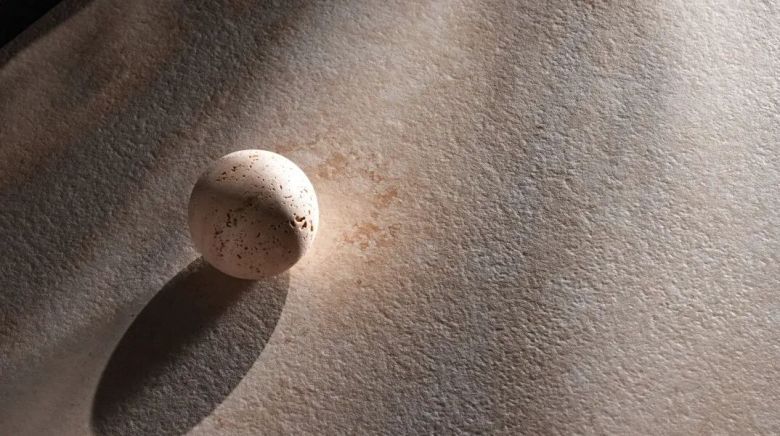 「天然素石·莱姆石」以3D数码微雕摹刻工艺,精准还原表面细微的化石纹理与孔洞。90微米雾化腊质釉和110微米钛合金超细干粒,不仅打造出近乎原石的温润触感,更兼具防滑耐污的实用性能。