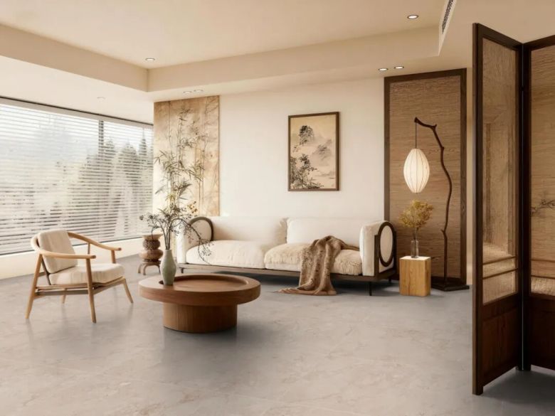「天然素石·莱姆石」,采用AI智能校色技术再现暖灰、米黄、浅咖等低饱和度自然色调,其素雅基底完美契合宋式“以简驭繁”美学——用纯净底色衬托细腻纹理,实现繁与简的平衡。