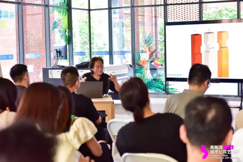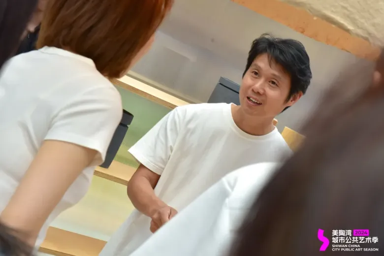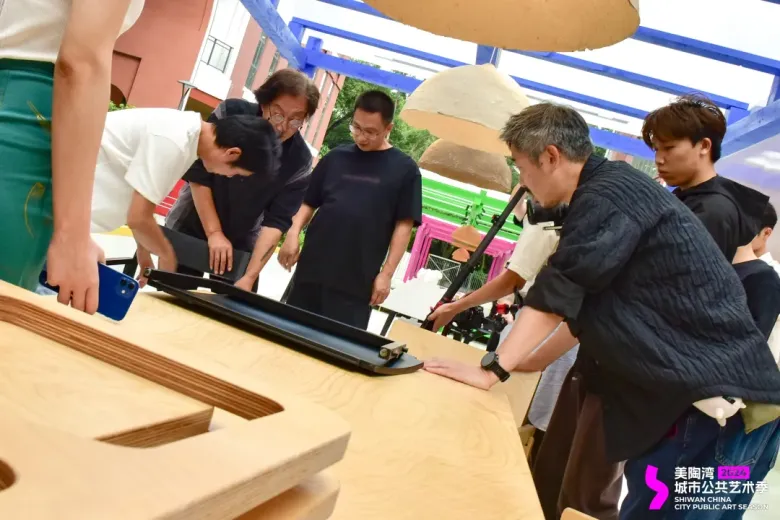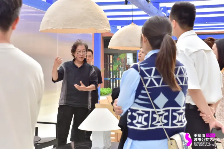 「创造者乐园」现场,策展人刘德志为到场媒体朋友们介绍了「创造者乐园」及2024美陶湾城市公共艺术季的策展理念,“我们希望将木头与泥巴作为表达语言,以一种可持续的展览手法,联合建筑师、艺术家、媒体朋友、源创品牌,一起融合跨界,一起谱就关于这座城的创造故事......”刘德志介绍道。