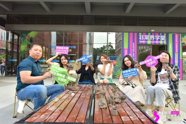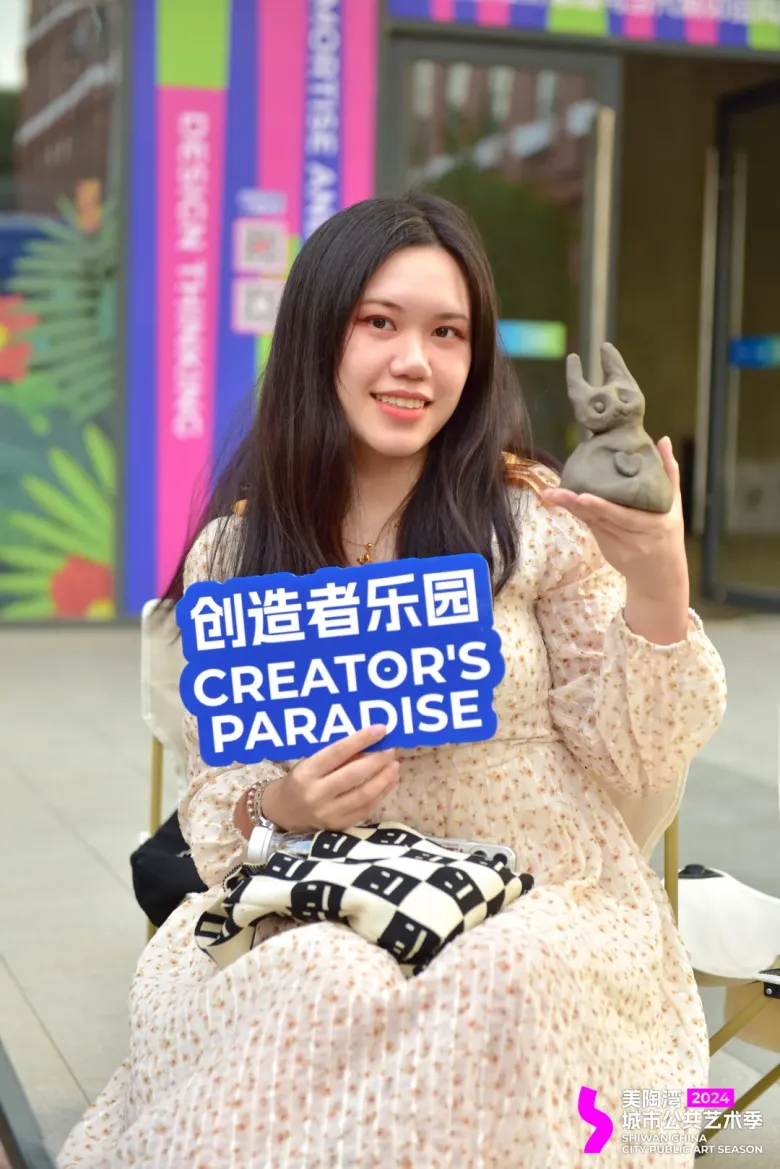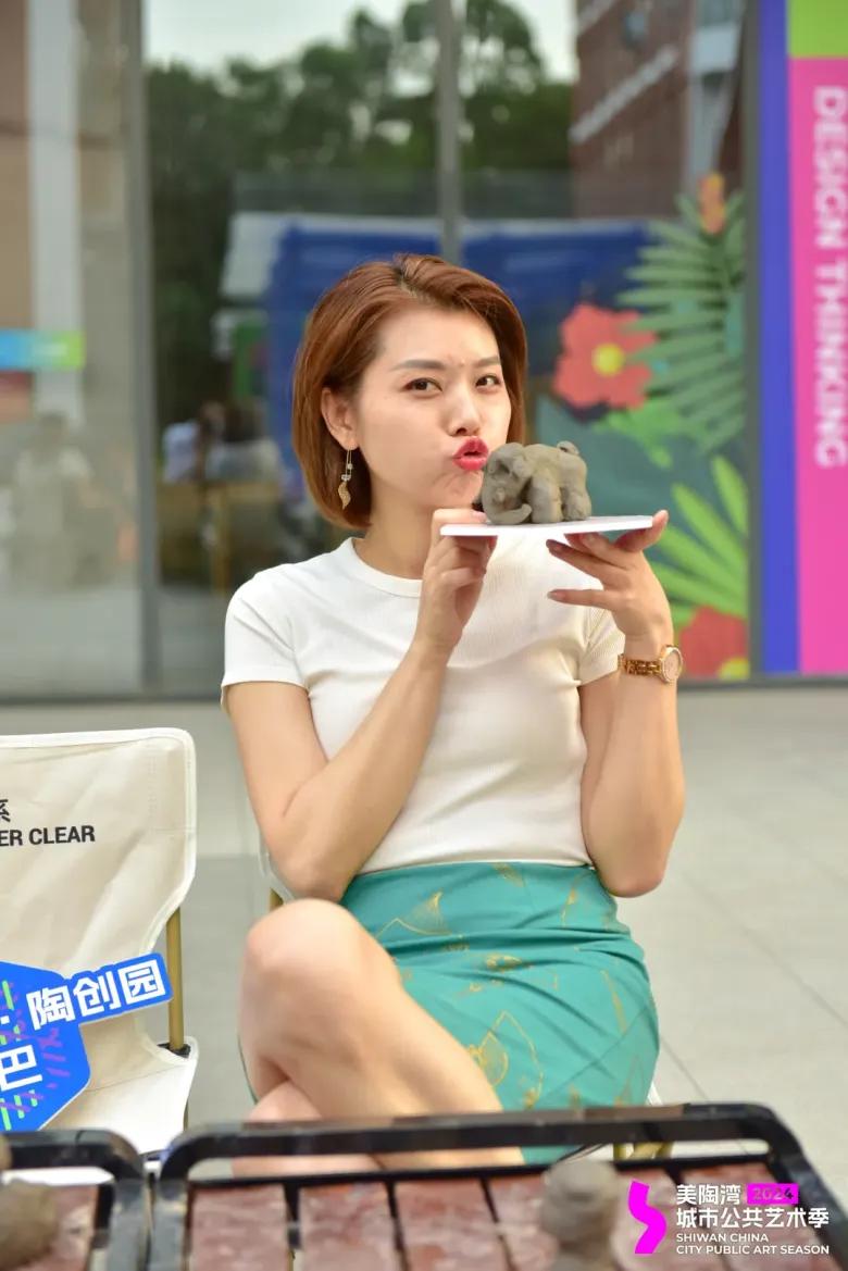 「我在陶创园玩泥巴」是本届美陶湾城市公共艺术季和「创造者乐园」发起的一项公共艺术创作行动。报名参与的群众将作为“大众创造者”,由美陶湾本土知名陶艺匠人带教,亲手捏制数个小兔形象的美陶湾泥偶,并将集中烧制、展出。到场媒体在领航创造者李春能老师带领下,同样作为“大众创造者”参与了「我在陶创园玩泥巴」创作体验。