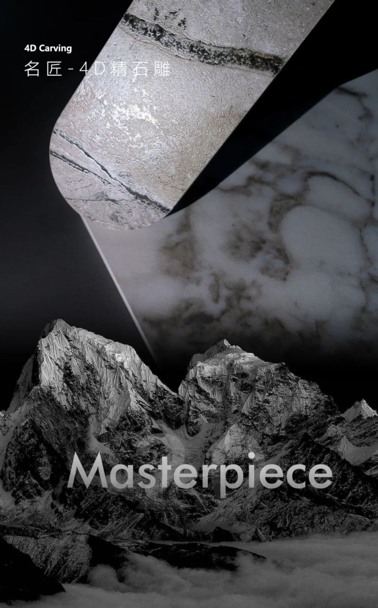 不同于传统石材的表层处理,4D精石雕以极具颠覆性的4D雕刻系统为核心,从微观结构出发,精准复刻山脉岩层的天然肌理,形成强烈的真实触感。