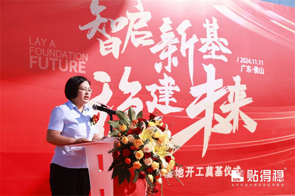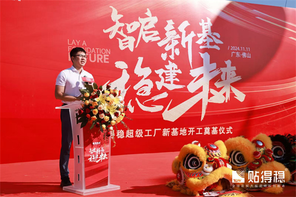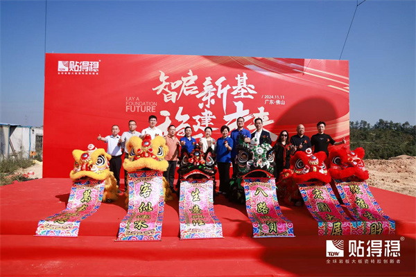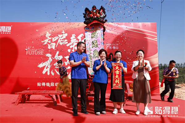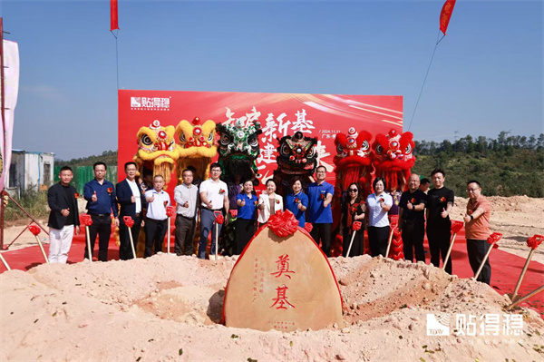 微风正好扬帆进,同心筑梦万年基。11月11日,智启新基·稳建未来——贴得稳超级工厂新基地开工奠基仪式在佛山市高明区更合镇隆重举行。更合镇党委书记周殿勇,更合镇党委副书记、镇长杨楠,更合镇党委副书记李小翔,合睿企业投资集团董事会主席、贴得稳创始人、总经理、首席执行官(CEO)胡媛,合睿企业投资集团董事会董事、贴得稳创始人、贴得稳贴新到家铺贴学院院长徐顺兰,合睿企业投资集团董事会董事、贴得稳创始人、贴得稳首席财务官(CFO)代华,合睿企业投资集团董事会董事、贴得稳创始人、贴得稳产品研发博士、技术研发总工(TCE)欧利平等共同见证这一盛事。