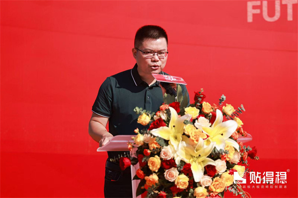 合睿企业投资集团董事会董事、贴得稳创始人、贴得稳产品研发博士、技术研发总工(TCE)欧利平在发言中全面细致地介绍了贴得稳超级工厂的未来规划,包括生产规模的扩大、产品研发的创新方向和市场拓展的战略布局等。他表示,贴得稳要做的就是不断创新、突破技术的研发,只有这样,才能在市场中立潮头。