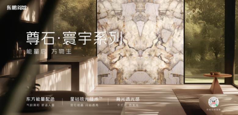 为实现这份情绪价值,东鹏还依托星钻琉光技术™与背光透光感两大核心技术IP。前者通过高精度干粒与墨水系统,精准复刻天然矿石的细腻光感。后者则由意大利顶级团队DIGITAL DESIGN和TECNOGRAFICA设计,通过材料升级与成像技术,呈现出“不打光自发光”的天然玉石感,让材质成为具备情绪感知的空间介质。
