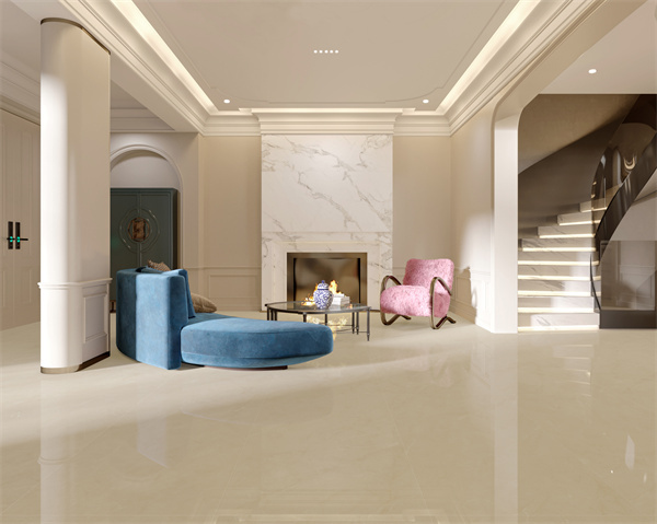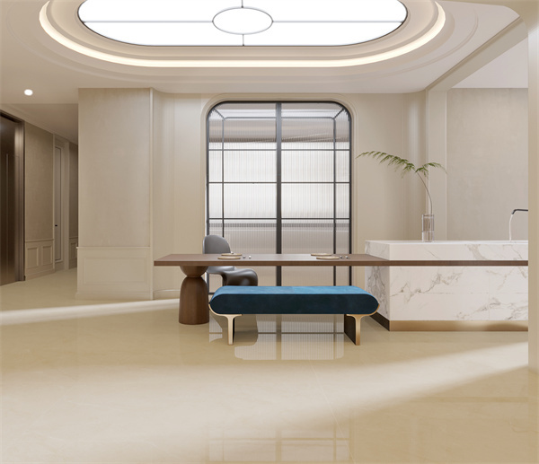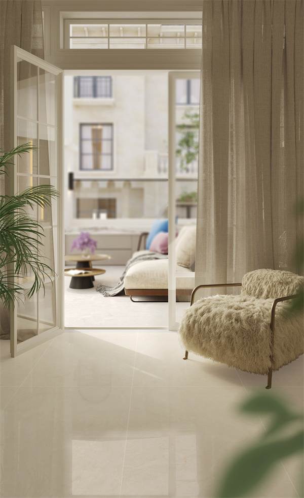 通透的亮光面瓷砖,干净柔软的沙发,顺着阳台的光线引导进入室内,不着痕迹的松弛感弥漫于一室。