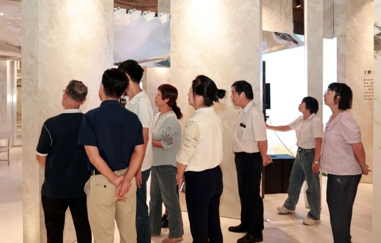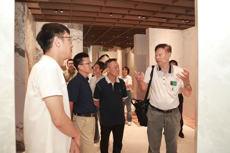△ 鉴定会专家团参观欧文莱素色美学馆,重点考察欧文莱项目成果,对产品性能、应用等多方面进行深入了解。