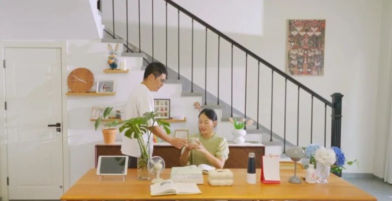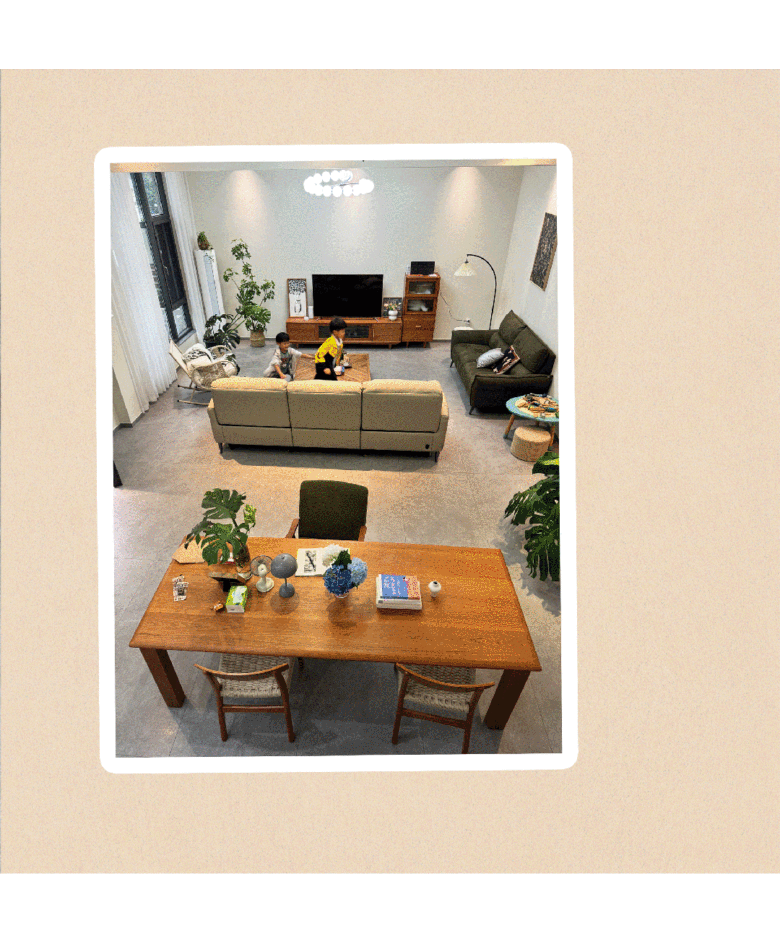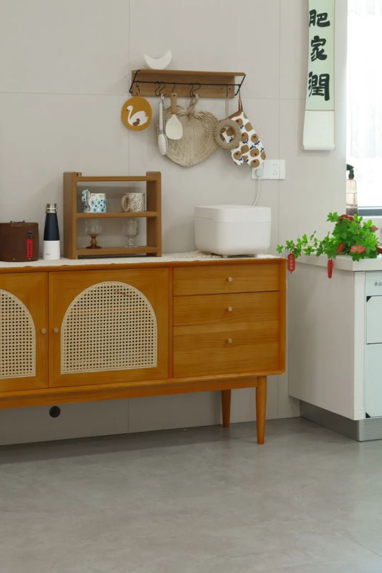 走进周大鱼家里,自然光线透过窗户柔和地洒落,与室内的灯光相互交织,宁静而又温暖。木质的家具和绿植相互映衬,简约又不失格调的各种软硬装搭配得当,这里就像是动漫世界的现实版