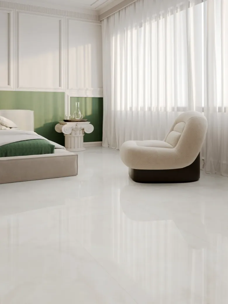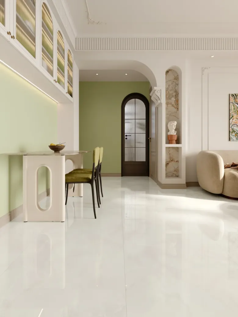 窗户设计宽敞明亮,让自然光充分洒入室内,配合通透的瓷砖光感效果,营造出明亮的氛围,仿佛将室外的自然风光引入家中。