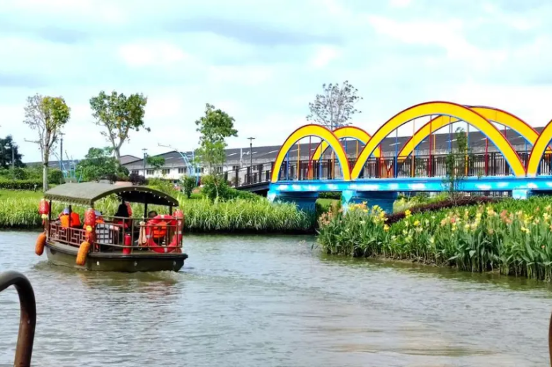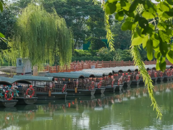 乘古风游船漫游紫南河道,吹着微风听水波轻响,随手一拍就是岭南水乡大片。此间时光被按下0.5倍速,没有车鸣与霓虹,只有清风和鸟鸣,将心底的一方天地沉浸在紫南水乡里。