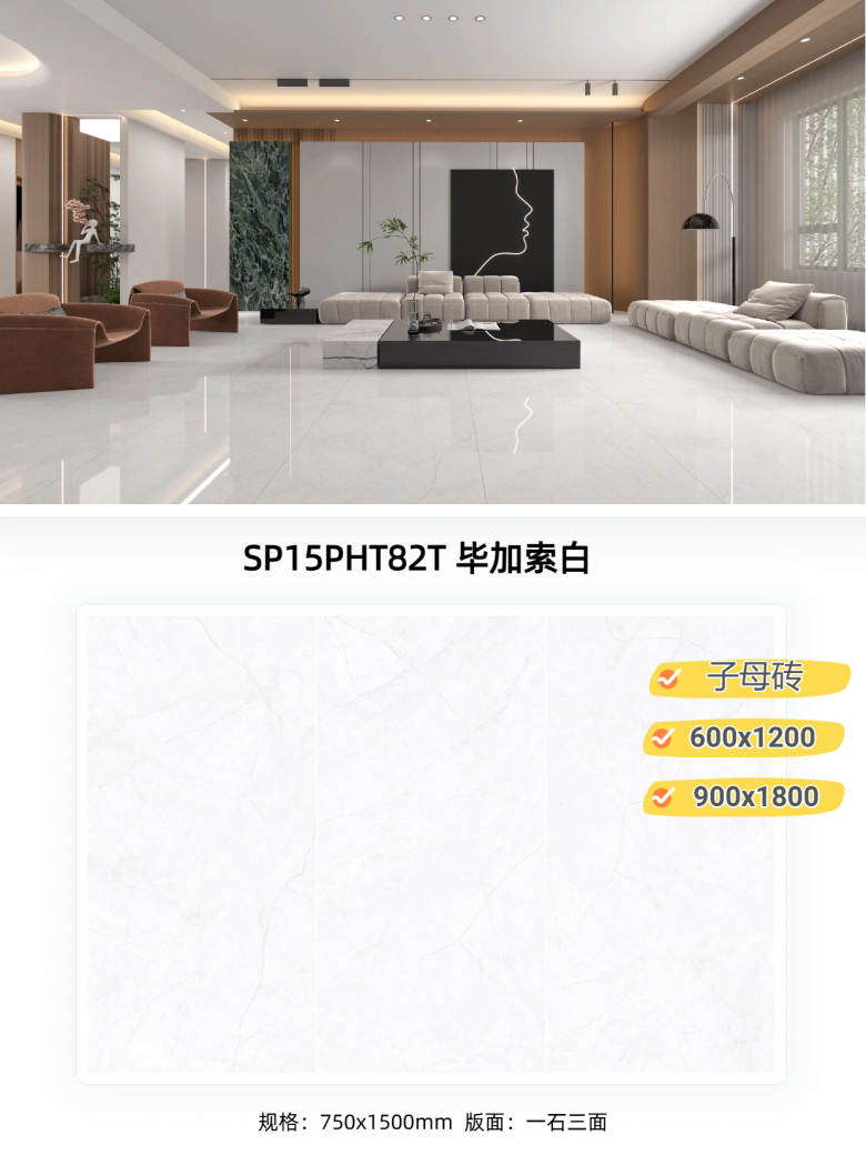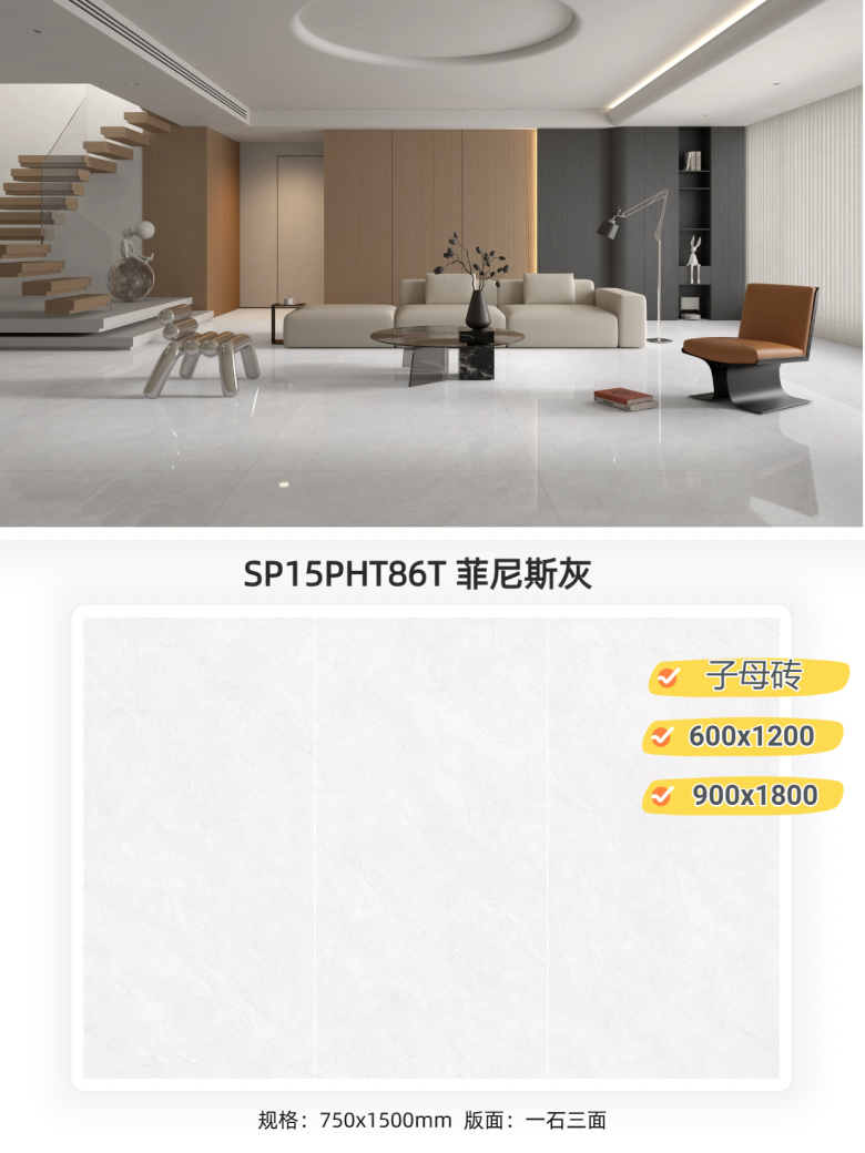 ✅ 大规格 + 亮面:750×1500 铺起来超大气,缝隙少,视觉上直接 “扩容”🏠 亮面反光显亮堂,阴天也不暗沉!