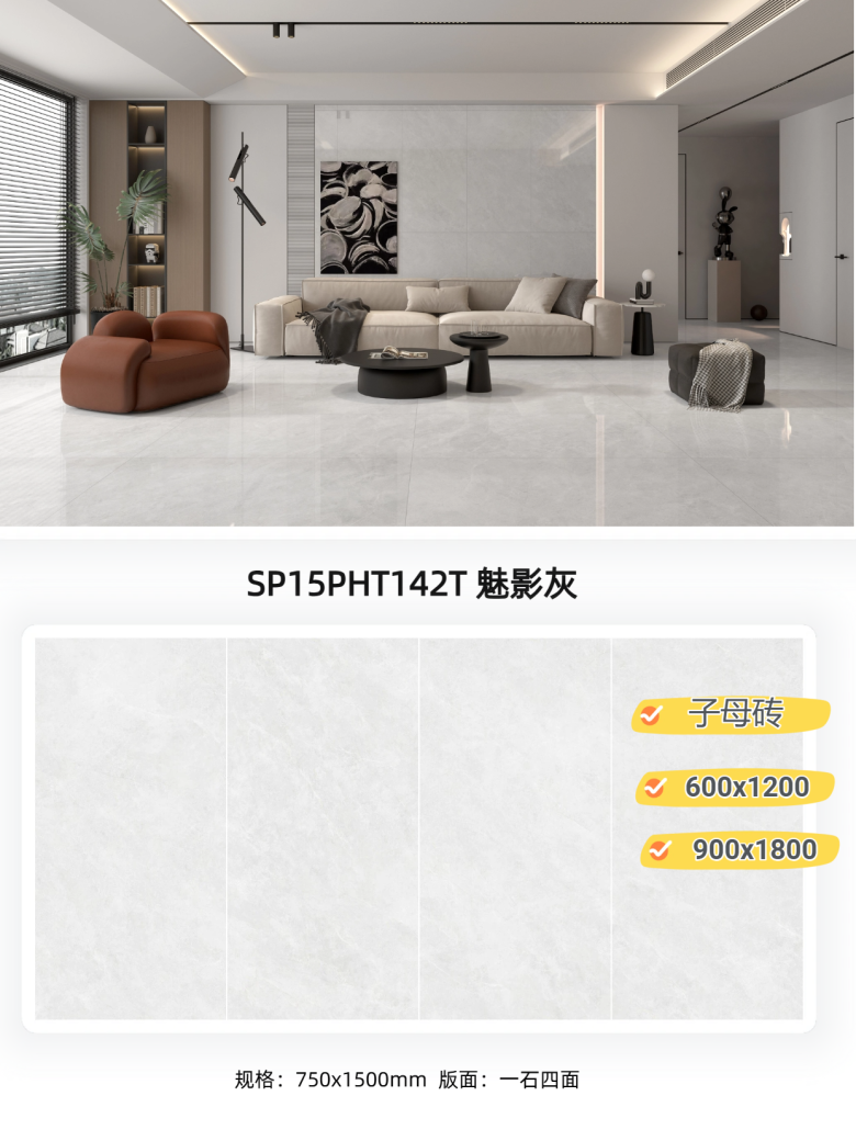 ✅ 子母砖适配:能搭 600×1200/900×1800,想局部换风格?轻松拼接不突兀,DIY 小能手狂喜✨
