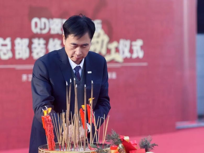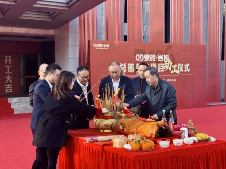 开新聚能!QD瓷砖敲响新总部装修动工第一锤!