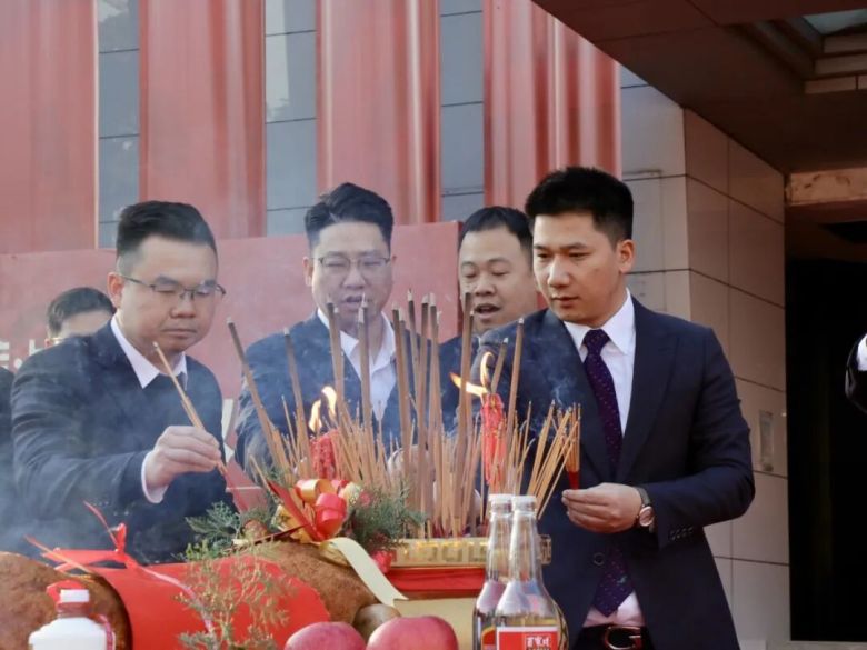 在热烈的氛围中,蒙娜丽莎集团高层领导团队带领现场与会人员进行吉礼仪式,承载着集团对QD瓷砖新总部开新聚能的美好期许!