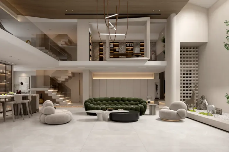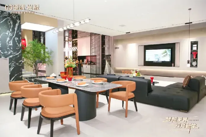 2024年,QD瓷砖推出原创新品“MO范·臻石”系列,灵感来源于自然界中的独特肌理,经过工艺迭代及创新设计,将无限延伸的视觉艺术注入生活空间,透过产品,能够感受山川的曲线、大地的褶皱;在规格上,900×1800mm、750×1500mm、1200×1200mm三种配套规格,可以满足不同空间场景的应用需求。