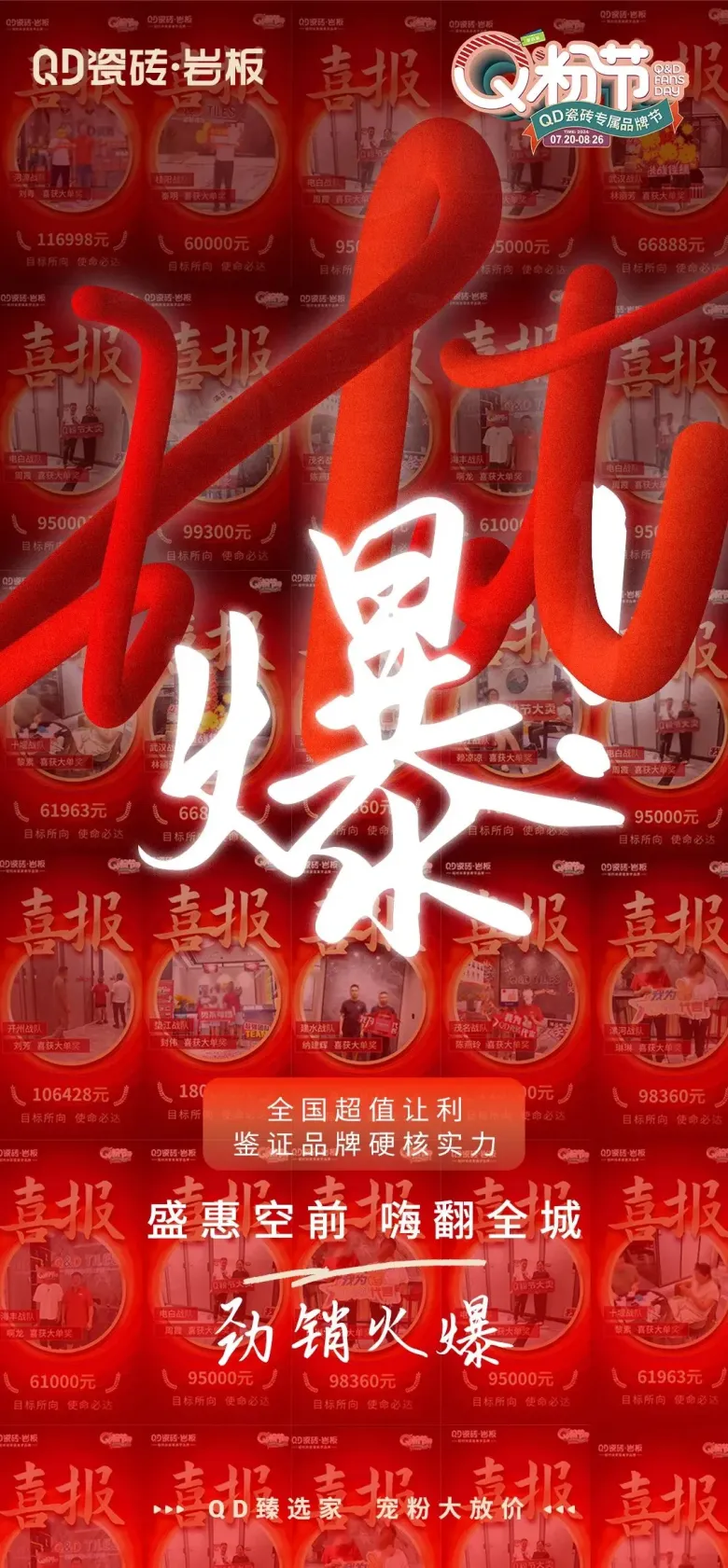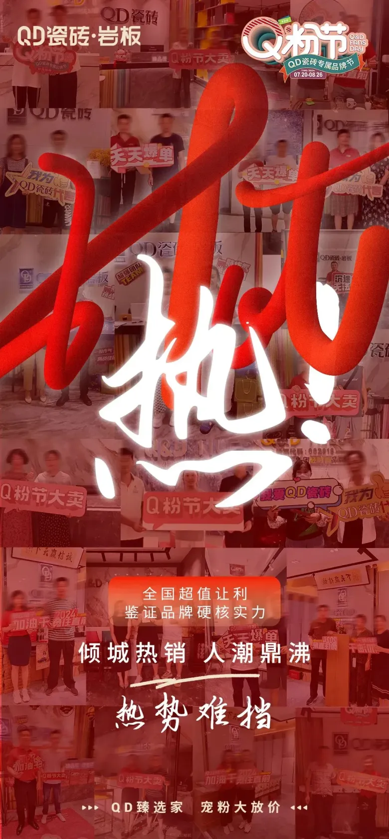 7月20日-8月26日,第四届Q粉节以近1亿元的战绩正式收官,这在当下的市场环境下,无疑是一个非常亮眼的数据。在陶瓷行业,不乏造节玩梗的品牌,但能围绕品牌调性迭代、创新玩法且持续出圈的品牌却不多,QD瓷砖就是其中的典型代表。